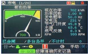 (3)机组可实现远程启停,有功功率及无功功率的自动调整,自动同期,满足自动化机组的需要。保护功能齐全,有发动机超速、油压低、水温高、机油温度高等发动机保护,也有逆功、过流、欠压/过压、欠频/过频等发电机保护功能。显示器:显示参数齐全,满足显示、参数设置、报警、历史记录等需要。