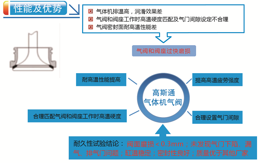 高斯通气阀和阀座适用于近300种机型,其使用寿命高于Nimonic80A气阀,产品使用情况优于同型号进口产品。高斯通高性能气阀实现自主研发并拥有自主知识产权的生产工艺,在上处于水平,通过MAN、WARTSILA 等柴油机认证,也是国内众多主机厂家(如∶济柴、胜动、淄柴、潍柴等)气门配套的主要供货商,是气阀国家标准牵头起草单位。