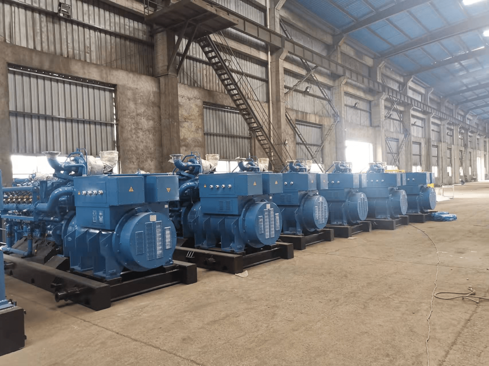 燃气发电机组由燃气发动机、发电机、控制柜等部件组成,燃气发动机与发电机安装在同一个钢制底盘上。机组以天然气、井口伴生气、煤矿瓦斯气
